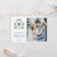 Ce carte photo a un design primitif du grand-millénaire avec une crête de grenier orange et une jarre de gingembre de Chinoiserie entourant une crête de bambou. Le bas a un texte bleu qui dit "Joyeux Noël". Vous pouvez personnaliser avec un nom, une année et votre initiale. Le dos est recouvert d'une motif rayée en bambou.