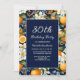 Invitation Oranges White Flowers Navy Blue 80th Birthday
