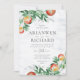 Un verger d'été aux fruits abondants, une ferme rustique de campagne avec des branches surplombées chargées de fruits. Il s'agit d'un design amusant d'aquarelle d'été, avec des pêches, des oranges, des couleurs rousses, complétées par la verdure et la fleur délicate.