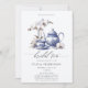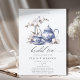 Un modèle moderne classique, sophistiqué, élégant et chic à la fête de thé nuptiale avec un tableau aquarelle d'orchidées blanches et un set de thé élégant avec un motif de style Hamptons bleu toile. Une atmosphère romantique et rêvée, rehaussée par une calligraphie romantique et élégante. Idéal pour une fête de thé à la douche nuptiale, élégante, classe et moderne, et mariées qui aiment les orchidées.