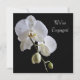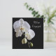 Annoncez que vous avez dit Oui à sa proposition de mariage et aux invités invitations de célébrer avec vous avec la jolie Fleur d'orchidée blanche carré sur Black Engagement Party Invitation. Cet invitation de fête à fleurs personnalisées classe présente une photo florale de fond de phalaenopsis blanc tropical fleurit sur la tige avec un arrière - plan noir.