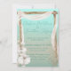 Ce faire-part de mariage a pour thème la plage romantique. L'arrière - plan bénéficie d'un dégradé qui ressemble à une plage ou une île tropicale de l'océan. Au centre se trouve une arche boho en bois et en mousselon. Une grande tige d'orchidées blanches de style aquarelle est placée sur la gauche.