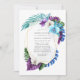 Aquarelle colorée feuilles tropicaux et orchidées Célébration de la vie invitation avec cadre géométrique or et bleu turquoise à l'inverse.