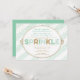 Cette élégante invitation à saupoudrer bébé sans distinction de sexe comporte des textes et des confettis glitteux avec un motif de arrière - plan rayé moderne en vert menthe et or. Le design de l'arrière est une couleur vert menthe solide qui correspond à l'avant. Vos invités adoreront ce design mignon et unique.