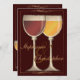 Un regard suranné élégant est donné à ces jolis verres de vin rouge et blanc dans cette invitation de partie de fiançailles qui est simplement parfaite quand les couples heureux sont des amateurs de vin ou l'événement sera tenu à un établissement vinicole ou à un vignoble. L'effet tiré par la main et coloré des verres s'ajoute à dénommer élégant avec juste un signe de charme rustique. Les timbres-poste assortis sont également disponibles :