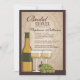 Un regard élégant et âgé à cette invitation vin-orientée de Fête de la mariée est parfait quand la jeune mariée est un amateur de vin ou la partie doit être tenue à un établissement vinicole ou à un vignoble. Deux verres du vin blanc avec des raisins et de la bouteille de vin sur âgée regardant l'arrière - plan subtil modelé donne à cette conception un Vieux Monde sensation toscane.