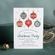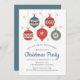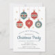 Cet élégant design de vacances présente des ornements festifs de Noël en rouge et bleu entourés de flocons dorés tombants. Customisez avec vos détails d'invitation de Noël aligné au centre, agrémenté de "Christmas Party" dans un script de calligraphie bleu chic. Sur l'envers des invitations est bleu solide. #noël #fêtes #saisonnières #invitation #invitation #ornaments #décorations #baubles #neige #flocons #rouge #white #chic #vintage #élégant #style #aquarelle #papeterie #fête #fête #fête #fête #fête #fête de Noël #fête de Noël #fête de Noël #fête de Noël