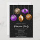 Cette invitation de fête de vacances élégante et glamour présente des ornements en marbre d'Halloween orange et violet sur un arrière - plan noir. Le texte combine écriture manuscrite et polices sans serif modernes pour un look élégant et sophistiqué. Les étincelles et la parties scintillant apportent une touche festive et magique.