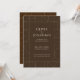 Une invitation de mariage moderne présentant des ornements dorés élégants sur un fond riche marron foncé. La typographie sophistiquée et les tons chauds créent un design intemporel et luxueux—parfait pour les couples recherchant une célébration raffinée et élégante.