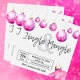 Incroyable pour inviter des amis, des familles, des voisins à un événement de réseautage hivernal et de fête. Jolie pendaison rose lunette ornements de Noël avec fil de couleur or et grand ornement rose dans le coin inférieur droit de la carte. Une grande esperluette festive apparaît au milieu de l'invitation. Carte inversée contient un motif sans soudure de jolies ornements en carreaux rose et gris en désordre avec les étoiles roses. Les informations sur les invitations de parti sont entièrement personnalisables. Conçu par mw1designsart.