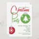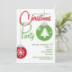 Une invitation de fête de Noël comportant un ornement rouge et vert décoré des flocons de neige et de l'arbre de Noël. Personnalisez le texte avec des détails de votre occasion.