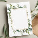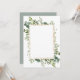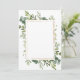 Cette invitation vierge présente des feuillages de eucalyptus peints à l'aquarelle, des feuilles vertes et un cadre rectangulaire doré faux.