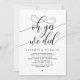Annoncez avec élégance votre bonheur à jamais avec notre carte d'invitation de célébration de l'élévation mariage à thème moderne noir et blanc, "Oh oui nous l'avons fait". Adaptée aux couples qui perpétuent leur histoire d'amour, cette invitation offre un équilibre parfait entre sophistication et charme, offrant le cadre d'un événement inoubliable. Doté d'un design contemporain moderne, il ajoute une touche de grâce intemporelle à votre journée spéciale. Conçu par le talentueux TeeshaDerrick, cette invitation est une expression élégante de votre amour durable.