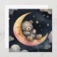 Une délicieuse pièce aquarelle mettant en vedette un ours endormi niché sur un croissant de lune brillant, entouré de nuages doux et d'étoiles. Ce design réconfortant est parfait pour la décoration de nurserie, la décoration à thème de l'heure du coucher ou comme cadeau pour les jeunes rêveurs. Apportez la magie du ciel nocturne dans votre maison avec cette œuvre d'art apaisante.