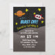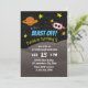 Feu De Bateau De Fusées Au Large De L'Espace Anniversaire Invitations De Fête D'Anniversaire.