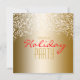 Invitation pailletée pour fête de vacances dorée. Personnalisez le recto et le verso pour n'importe quel événement.