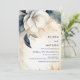 This elegant minimal wedding invitation features 3D faux relief white flower with a shadow on a tan background. First names only text template