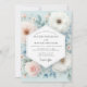 Ethereal pale blue tones mingle with delicate blush and creamy white blossoms, creating a dreamy, romantic atmosphere. Soft greenery accents the artistic floral arrangement, evoking a sense of serene elegance. This design whispers of gentle celebrations and airy, lighthearted festivities.