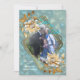 Une palette bleu clair est avant un motif arrière - plan en cuivre/bronze de style barogue avec des fleurs crème et des feuilles or sur un cadre en forme de losange pour votre invitation photo unique