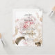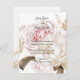 Ce design présente une étonnante palette de couleurs, avec un agencement abondant de roses doux rose, taupe et crème aux côtés des pivoines. Il est mis en valeur par un ruban foncé contrastant, créant une invitation florale qui attend votre touche personnelle pour votre jour de mariage.