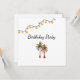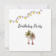 Invitation à la fête d'anniversaire du Tropical Beach, avec un élégant palmier et des lampadaires design sur un arrière - plan blanc. Avec le lettrage typographique personnalisable, vous ajoutez vos propres informations. Un invitation glamour pour planifier votre fête spéciale.