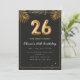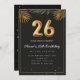 Luxe Golden Tropical Palm Feuilles 26e anniversaire de fête Invitation. Adorable invitation de fête de 26ème anniversaire dans un design de ballons noirs et or avec des feuilles de palmiers tropicaux dorés. Customisez avec les détails de votre fête et envoyez un courriel à la famille et aux amis les invitant à célébrer le 26e anniversaire avec style!