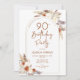 90e invitation de fête d'anniversaire en terre cuite brûlée orange et blanc. Bel design moderne minimaliste aux accents botaniques peints à la main. Caractéristiques pampas herbe, feuille, rose et typographie script. Thème du désert tendance bohème parfait pour l'automne, l'hiver, le printemps ou l'été. Vous pouvez choisir des invitations imprimées et/ou le modèle numérique de téléchargement instantané. Parfait pour une célébration féminine stylée du 90ème anniversaire.