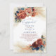 Pampas herbe et terre cuite, bleu marine fleurs botaniques élégantes invitations à la fête d'engagement