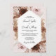 Cette Faire-part de mariage florale en laiton rose Dusty Boho Pampas est en tête de tendance dans une palette de couleurs douces teintes rose pâle, terre cuite, champagne et ivoire. Il présente de beaux roses et fleurs d'aquarelle détaillés avec de l'herbe de pampas et des palmiers séchés sur un arrière - plan blush. Cette belle palette de couleurs est parfaite pour un printemps, été ou mariage de automne. L'invitation revient à un code QR RSVP. Personnalisez avec tous vos détails mariages.