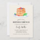 Jetez un brunch d'anniversaire avec ce magnifique modèle d'invitation avec un tableau aquarelle d'une pile de crêpes, miel, menthe, et baies.