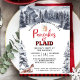 Célébrez la saison des fêtes (ou l'anniversaire d'automne/d'hiver) avec une fête amusante Pancakes and Plaid ! Invitation avec l'aquarelle des montagnes et le paysage forestier et le renard jouer dans la neige. Buffalo plaqué noir et rouge à damiers motif sur le dos et détails sur le devant. : pour les ajustements de texte, vous pouvez modifier cette conception à l'aide de l'outil de conception.