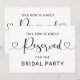 Réservez les sièges au premier rang à vos proches avec cette pancarte à écriture moderne "Réservé au cortège nuptial". L'orientation paysage et la calligraphie fluide avec des fioritures en forme de cœur font une déclaration élégante accrochée aux chaises de cérémonie ou aux extrémités des bancs. Idéal pour réserver des rangées pour le cortège nuptial, la famille ou les invités VIP. Tout le texte est entièrement personnalisable.