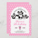 Invitation toute votre famille et amis à la fête d'anniversaire de bébé pandas thème de votre enfant avec cette invitation d'anniversaire de pois de polka. Personnalisez-le en ajoutant l'âge, le nom et les détails de la fête à cette invitation mignonne aux pandas.