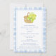 Une invitation classique en vichy aquarelle avec une corbeille de pétoncles d'hydrangées. Tout libellé peut être modifié pour convenir à votre événement.