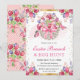 Aquarelle Fleurs roses et violettes en Panier avec Papillons design avec bordures de feuille d'or et confettis de parties scintillant