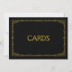 Panneau de mariage élégant et simple de style art déco "Cartes", personnalisé avec votre propre texte, avec un cadre art déco doré sur fond noir.