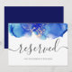 Ce panneau réservé au mariage est un moyen chic d'informer les invités sur les places réservées lors de votre cérémonie. Une élégante texture aquarelle encadre le haut du panneau mariage dans de jolies nuances de bleu turquoise, d'indigo et d'or chatoyant. Jolie calligraphie gris charbon dit "réservé" avec des fleurs qui s'étendent des bords de la carte. Sous la calligraphie, modifiez le texte pour indiquer pour qui le siège est réservé (ou supprimez si nécessaire). Une signalétique et un décor mariage correspondants sont disponibles dans notre collection de mariages Mystical Modern Ink Wash.