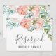 Ce panneau "réservé" avec des fleurs de paon romantiques est parfait pour un mariage élégant. La carte est recto-verso (imprimée des deux côtés). Le design floral présente des fleurs aquarelles cascadeuses rose pâle, pêche et blanches. Utilisez ces cartes pour réserver des chaises ou des tables lors de votre cérémonie de mariage, réception ou tout événement.