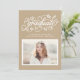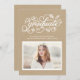 Fêtons le diplômé ! Invités Invitations à votre diplôme avec notre Rustic Whimsical Calligraphy Graduation Photo Invitation. Cette invitation à la remise de diplômes de photographie présente une calligraphie rustique et une photo personnalisée pour faire votre faire-part unique. Cette invitation de graduation personnalisée est parfaite pour envoyer à des amis et à une famille, que vous fassiez une fête ou que vous les ayez simplement invités à votre cérémonie. Parfait pour le lycée, l'université, ou toute étape de graduation. Cette invitation à la graduation rustique est disponible dans une variété de couleurs et de cartons.