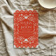 Ce Faire-part de mariage mexicain de Papel Picado Orange White Folk Art présente un cadre orange symétrique, décoratif et inspiré de picado traditionnel en papel ou de motifs découpés en dentelle, souvent vus dans des décors festifs ou folkloriques. Des motifs découpés en blanc et complexes de coeurs, de fleurs et de tourbillons embellissent la frontière, créant une atmosphère élégante et romantique. Les bords des pétoncles sont ornés de formes répétées, pétales et pointillées, ce qui en fait un lieu idéal pour les invitations, les cartes de voeux ou les annonces festives au charme artisanal.
