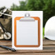 Du papier vierge sur un porte - bloc. Cette conception semble vraiment efficace sur ces Invitation