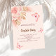 Pour une Fête des mariées de style boho moderne. Un arrière - plan de pêche. Décoré de fleurs roses d'or et de rose, de roses, d'herbe de pampas et de papillons. Personnalisez et ajoutez un nom et des détails du parti. Retour : arrière - plan de couleur pêche et papillon.