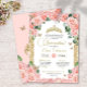 Tout le texte peut être édité pour n'importe quelle occasion. Roses roses roses, fleurs roses, élégante invitation à la quinceanera rose et or, coing rose, invitation à l'anniversaire à la floraison rose.