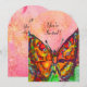 INVITATION PAPILLON ROUGE DANS FUCHSIA ROSE PAILLETÉ D'OR