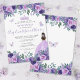 Aquarelle Florale pourpre Quinceañera Invitation avec papillons. Ce design enchanteur donne vie à un thème de jardin floral fantaisiste, parfait pour une célébration de Quinceañera. L'avant présente de délicats roses d'aquarelle et des fleurs dans un mélange de teintes violettes, lilas et violettes profondes, accentuées par des feuilles verts doux. De charmantes papillons aquarelles flottent partout, apportant une touche magique. Un mélange de polices serif classiques et d'élégantes typographies de scripts améliore le raffinement et le charme ludique du design. Au fond, un arrière - plan blanc et propre présente les mêmes beaux éléments floraux et un papillon aquarelle, remplaçant la tiare par un détail frais et enchanteur. Le design est entièrement personnalisable : ajustez les couleurs de police pour qu'elles correspondent à votre thème ou égayez le look en sélectionnant l'icône "oeil" à côté du calque nommé "blanc transparent" pour rendre les couleurs pop encore plus. Disponible sous forme d'invitation imprimée ou de fichier numérique téléchargeable que vous pouvez envoyer par e-mail ou avoir imprimé localement, cette invitation est parfaite pour créer une célébration de Quinceañera rêveuse et mémorable.