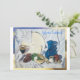 Une belle table de pâque avec du vin, le fruit, le matzoh et un plat de seder sur une nappe de dentelle blanche. les mots vous êtes invités dans le manuscrit bleu la date d'avant et de temps et l'endroit sur le dos en le même manuscrit bleu.