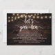 Calligraphie moderne Carte d'invitation à la douche nuptiale (Let's Par-tea), en bois foncé rustique lampes à cordes design thème. Invitation les invités avec cette carte d'invitation parfaite. Ajoutez les détails de votre douche nuptiale dans le libellé correspondant.