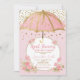 Parapluie Rose Pâle Avril Pleut Fleur de Mai Fleurs Roses Bébé Fête Invitation Paillettes Dorées