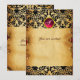Invitation PARCHEMIN monogramme pierre précieuse damassée rou