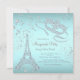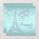 Fête de la mascarade parisienne avec la tour Eiffel en diamant et masque de la mascarade en diamant sur un arrière - plan bleu et diamant assez turquoise. Cette élégante invitation à la mascarade bleue turquoise est facilement customisée pour votre événement en ajoutant simplement les détails de votre événement, le style de police, la taille et la couleur de police et le libellé. Il s'agit d'un dessin imprimé sans véritable diamants, parties scintillant, etc. Vous pouvez supprimer l'arrière - plan turquoise pour ajouter votre propre couleur arrière - plan.